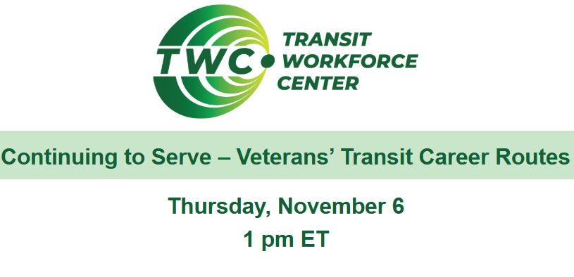 The Transit Workforce Center (TWC) is the Federal Transit Administration’s national technical assistance center for transit workforce development. TWC supports the workforce development needs of urban, suburban, tribal, and rural public transportation entities across the country.