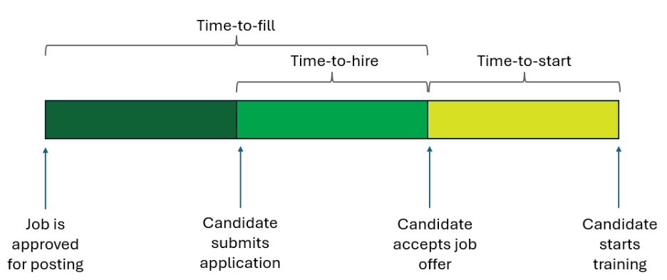 - Time-to-start: the average number of days between the time a candidate accepts a job offer and the time they start training