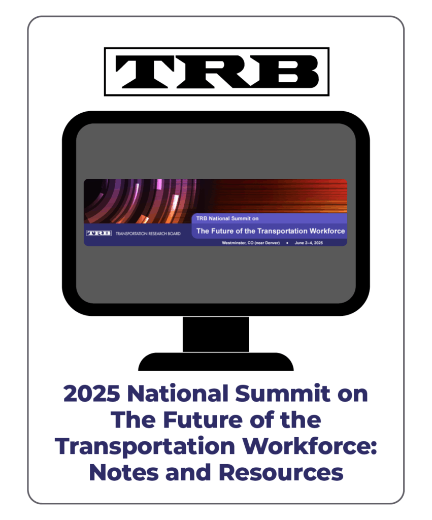 The Transportation Research Board (TRB) organized the National Summit on the Future of the Transportation Workforce, June 2-4, 2025. The Summit is built around an interactive format facilitating innovative thinking and problem solving as public, private, and nonprofit organizations work to build and maintain a resilient and skilled workforce for the transportation sector, supporting our changing modes and communities. This landing page provides links to pre-conference webinars and briefing papers from summit sessions.